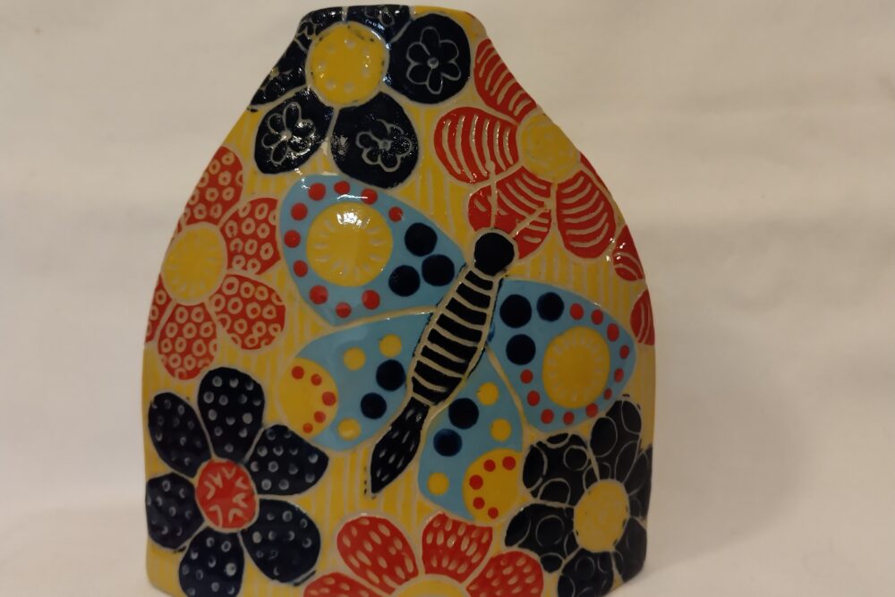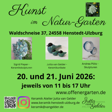 Ich begeistere mich für die Keramik genauso wie für meinen naturnahen, blumenreichen Garten mit Vögeln, Bienen, Schmetterlingen und weiteren Insekten. Beides zu kombinieren macht unglaublich viel Freude und so entstehen einerseits aufwendige Naturmotive auf Vasen, Bechern und Tellern und andererseits Unikate für den Garten in farbenfrohen Designs.