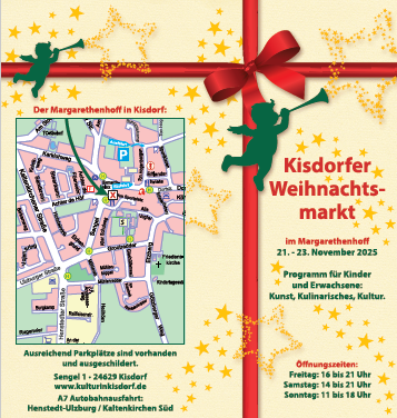 Wir freuen uns auf nette Besucher in einzigartiger Atmosphäre beim Weihnachtsmarkt im Margarethenhoff in Kisdorf vom 21. bis 23. November 2025.