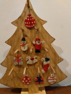 Mit viel Geduld habe ich ganz individuellen Weihnachtsschmuck getöpfert. Besonders schön am Weihnachtsbaum – auch draußen, denn sie sind frostfest.